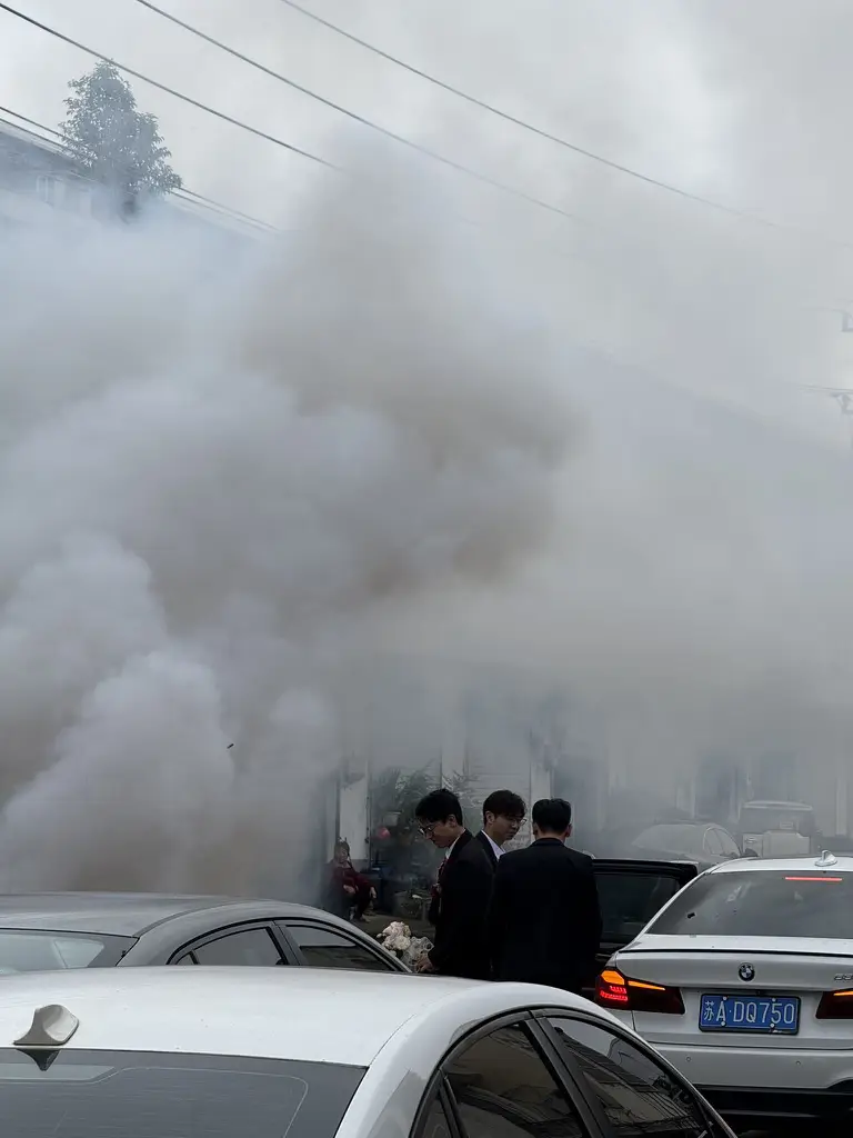 饭后新娘就要被正式接出门了。我们几个伴郎提上嫁妆、放上几条催促的鞭炮🧨,新娘终于下来了。而后依然是在一阵鞭炮声中,车队接上新娘回家咯。