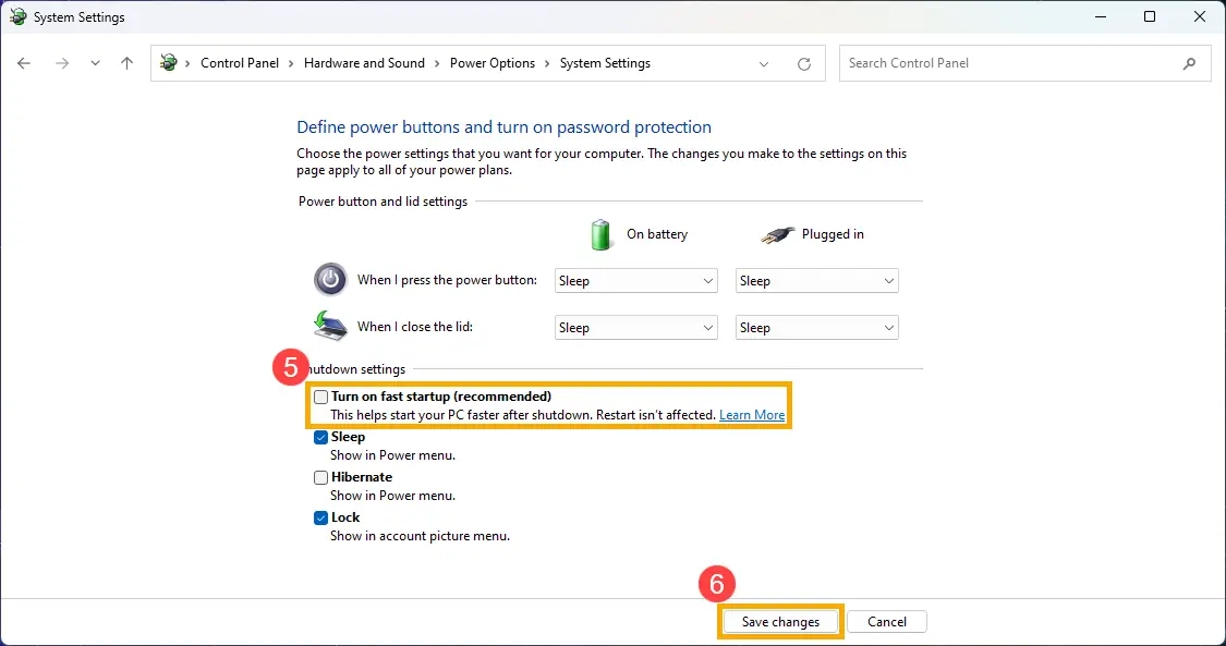 Step 1 关闭快速启动¶