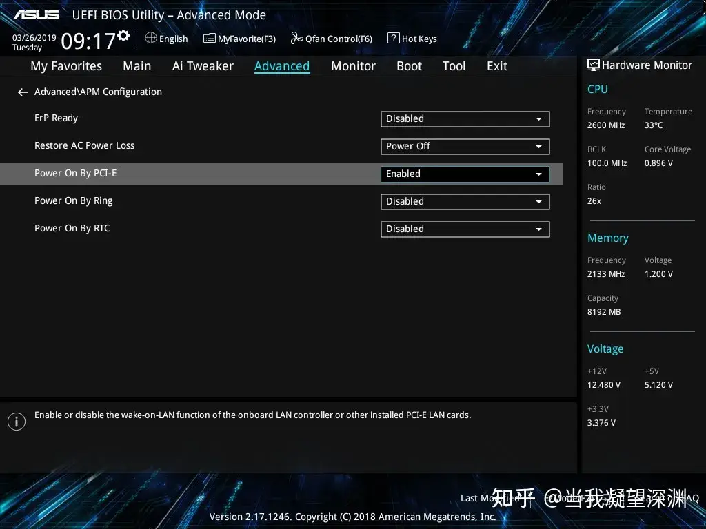 图源知乎,如果你选了PCI-E设备来唤醒(例如板载网卡),那么